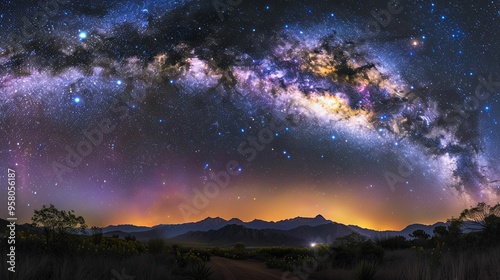 © Arieswanto, Fototapeta premium Milky Way Galaxy Over Silhouetted Mountain Range