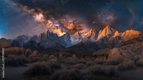 © Rere_Art151, Fototapeta premium Milky Way Galaxy Over Snow-Capped Mountains