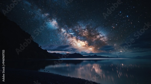 © Rere_Art151, Fototapeta premium Milky Way Galaxy Reflected in Still Water of a Mountain Lake
