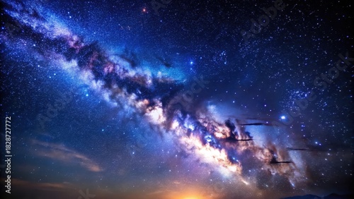 Obraz premium Milky way galaxy with stars in dark blue night sky background