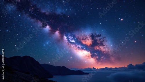 Fototapeta premium Milky Way galaxy with thousands of twinkling stars and planets, astronomy,...