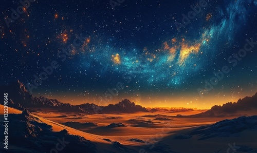 © Galina, Fototapeta premium Milky Way glowing over a vast desert landscape