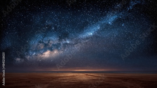© indirah, Fototapeta premium Milky Way Night Sky Over Earthy Ground, Dark and Serene Landscape
