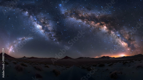 © Yelena, Fototapeta premium Milky Way Over Desert Landscape - Astrophotography