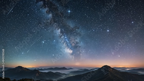 Naklejka premium Milky Way over Mountain Range at Dawn