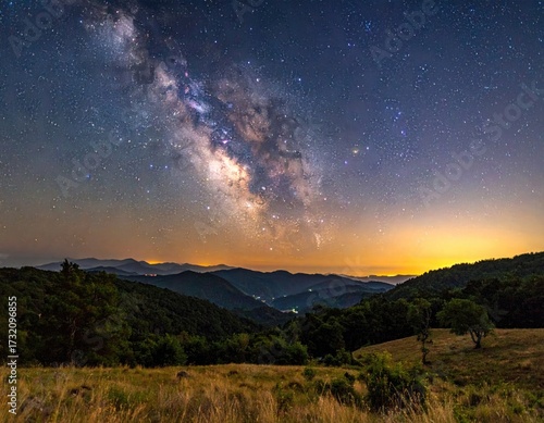 © yaya, Fototapeta premium Milky Way over mountain range at night