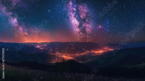 Naklejka premium Milky Way Over Mountainous Landscape