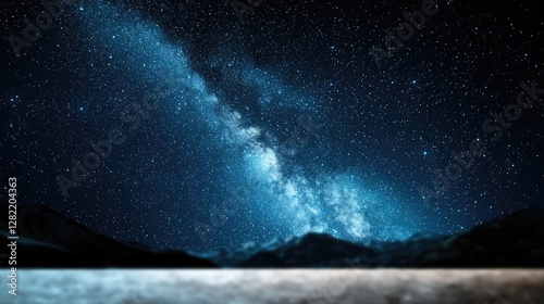 Fototapeta premium Milky Way over mountains, night sky, serene landscape, travel poster