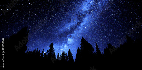 Naklejka premium Milky Way Sky Forest at Night Time Stars