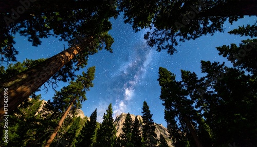 © Farti, Obraz premium Milky Way through forest canopy