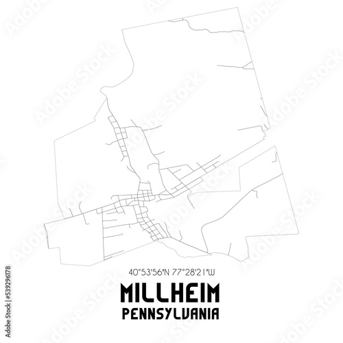© Rezona, Obraz premium Millheim Pennsylvania. US street map with black and white lines.