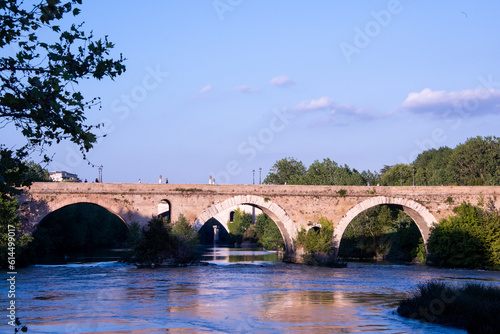 Fototapeta premium Milvian Bridge at sunset, on river Tiber in Rome