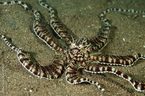 Naklejka premium Mimic octopus, Thaumoctopus mimicus, Lembeh Strait Sulawesi Indonesia