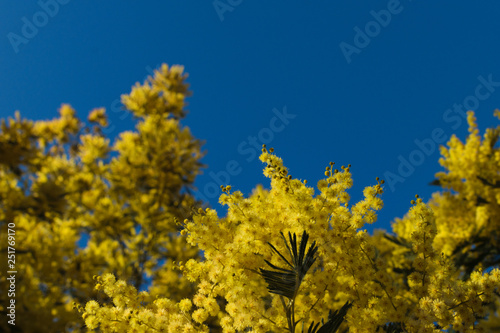 © Carmen, Fototapeta premium mimosa tree yellow flowers on background of blue sky