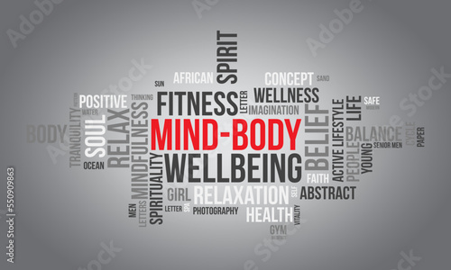 © Rana, Obraz premium Mind-Body word cloud background. Mental Health awareness Vector illustration design concept.
