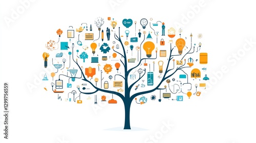 © Nattapat, Fototapeta premium Mind map infographic of ethics in daily life, showing how moral principles guide decisionmaking and activities, isolated on a white background with a clear, simple design