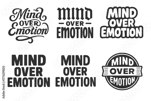 © Coosh448, Fototapeta premium Mind Over Emotion. Mind Over Emotion. Set lettering. harmonious lettering variations of the same emblematic concept, each with different artistic