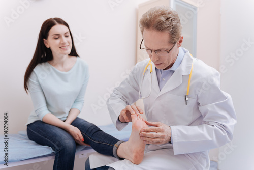 © Viacheslav Yakobchuk, Fototapeta premium Mindful charismatic expert testing the work of patients joints