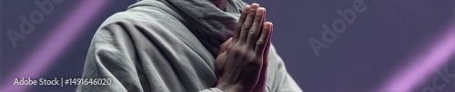 © Ryzhkov, Fototapeta premium Mindful Meditation Tech Minimalist Spiritual Connection with Zen Monks Contemplative Gesture - Wellness App Visual Inspiration for Digital Mindfulness