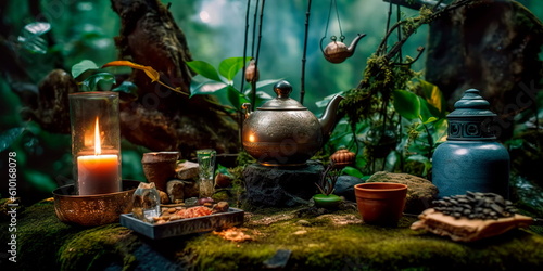 Fototapeta premium mindful morning ritual incorporating natural elements, such as sipping herbal tea, practicing gratitude, and setting intentions for the day ahead.Generative AI