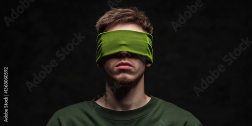 Fototapeta premium Mindful Uncertainty Gen Z Leadership and Sensory Blindfold Metaphor for...