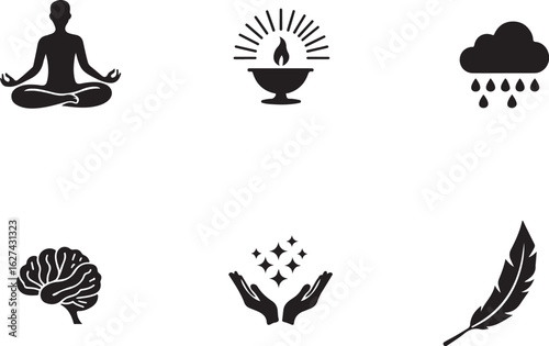 © BINDASBIPLOB, Naklejka premium Mindfulness, ideas, and nature symbols for holistic well-being and mental health