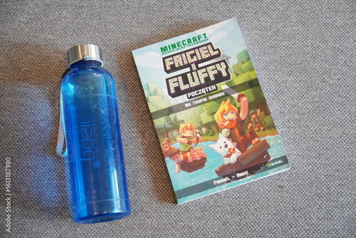 Fototapeta premium Minecraft "Frigiel & Fluffy" Book and Blue Water Bottle