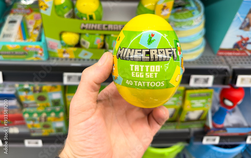 © Jammer Gene, Naklejka premium Minecraft Tattoo Egg Set Toy Capsule with Temporary Tattoos in Retail Store