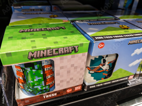 © VGV, Obraz premium Minecraft Themed Coffee Mugs Displayed in Store