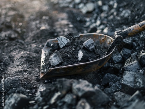 © Veronika, Fototapeta premium Miners holding coal in underground tunnel, conceptualizing mining industry work
