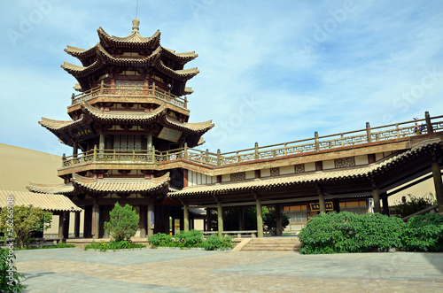 Fototapeta premium Mingyue Pavilion in Dunhuang,China