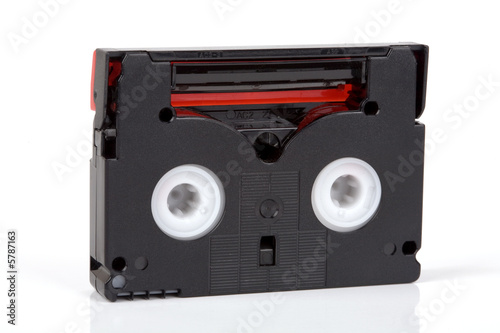 Obraz premium Mini Dv casette close up on isolated white background.