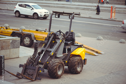© lanarusfoto, Obraz premium mini loader cleaning city and road works in the centre
