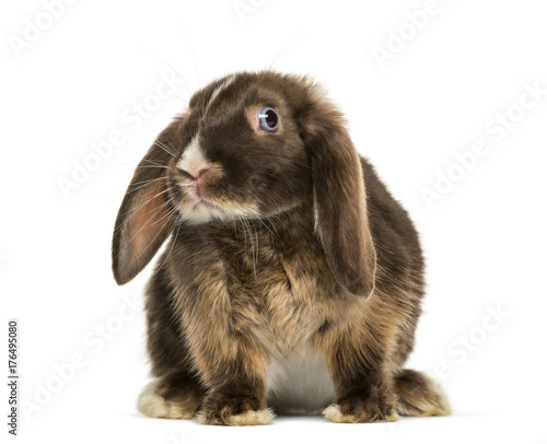 Fototapeta premium Mini lop rabbit standing, isolated on white