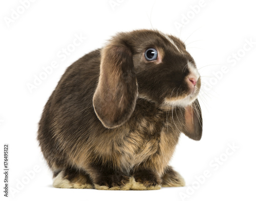 Fototapeta premium Mini lop rabbit standing, isolated on white