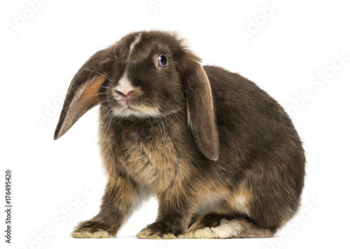 Naklejka premium Mini lop rabbit standing, isolated on white