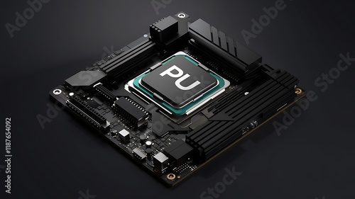 © ardanz, Obraz premium Mini PC motherboard closeup; processing unit; dark background; tech concept; website use