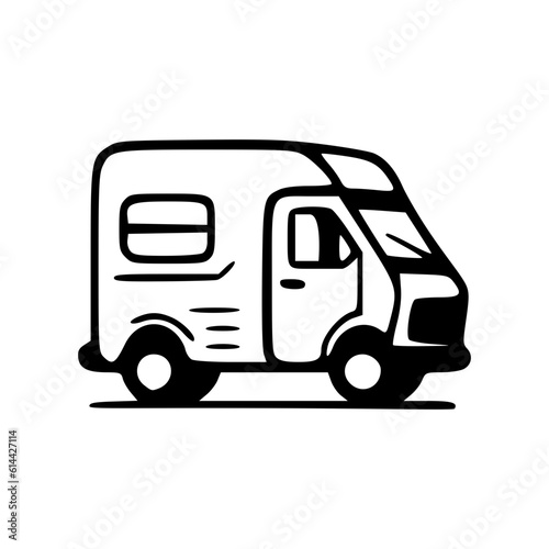 © Vectonessa, Obraz premium Mini van black icon vector illustration