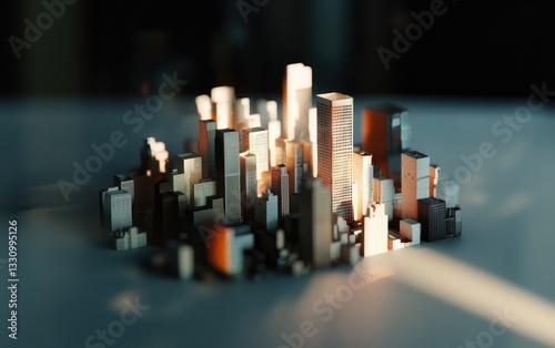 © creatfive, Obraz premium Miniature City Model with Warm Lighting on White Surface