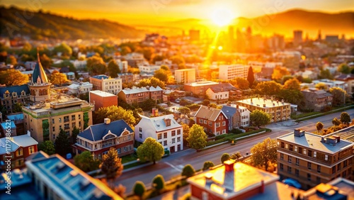 Naklejka premium Miniature Cityscape: West Coast Sunset, Tilt-Shift Photography