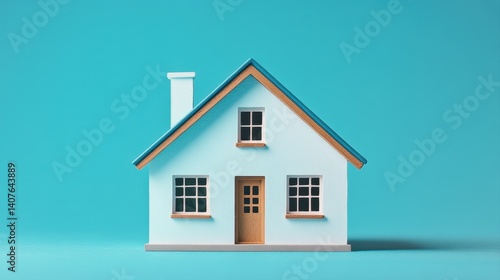 © Benzbutter, Obraz premium Miniature House Model on Vibrant Blue Background Showcasing Modern and Minimalist Architectural Design
