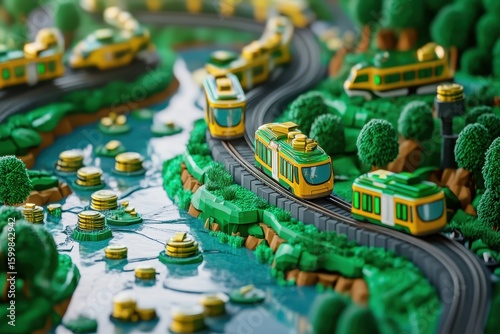 © Barman, Fototapeta premium Miniature landscape scene with trains and waterways.