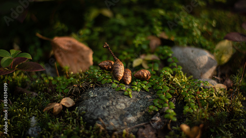 Obraz premium Miniature landscape with cedar cones on stone