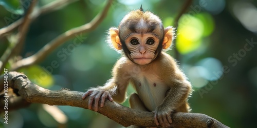 © Alexander Chaykin, Fototapeta premium Miniature Monkey Perched in Trees