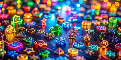 © prapatsorn, Fototapeta premium Miniature Outline Symbols: A Tilt-Shift Photography Perspective
