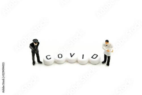 Fototapeta premium Miniature people : coronavirus covid 19 infected patient caution outbreak alert.
