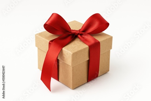 © TheWaterMeloonProjec, Obraz premium Miniature present with a decorative ribbon on a plain white backdrop