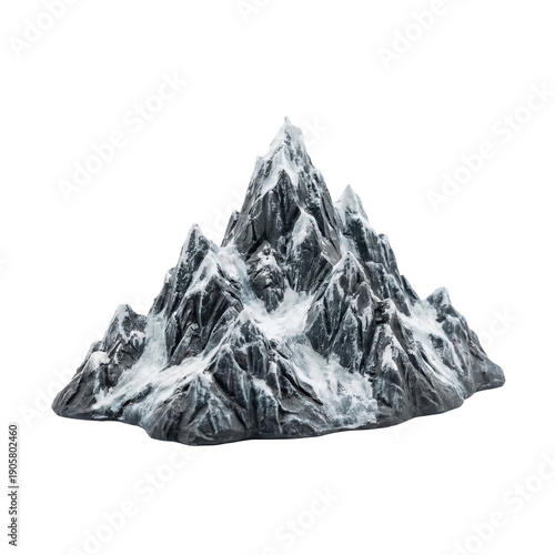 Obraz premium Miniature Snowy Mountain Peak Isolated on Black