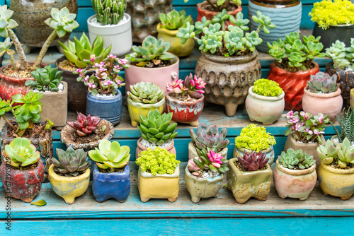 Fototapeta premium Miniature succulent cactus plants in the flower garden