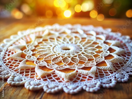 © Arnada, Obraz premium Miniature White Lace Doily Handmade Craft, Closeup Tilt-Shift Video Still